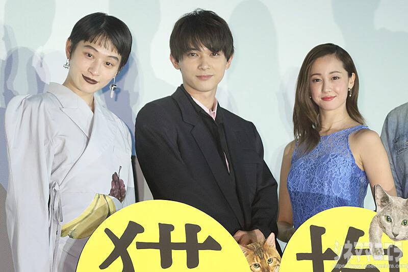 女優の沢尻エリカが6年ぶりに主演する映画『猫は抱くもの』の完成披露に、共演の吉沢亮、コムアイ(水曜日のカンパネラ)、それに犬童一心監督と出席。本作撮影後に譲り受けたロシアンブルーの愛猫グリグリの芸達者ぶりにメロメロだった。