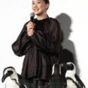 そして、竹中はペンギン風の衣装を着て手にはペンギンのぬいぐるみ。当日が30歳の誕生日である石田監督はポケットと背面の裾にペンギンが飛び交うポロシャツ姿だった。というペンギンづくしのイベントになった。