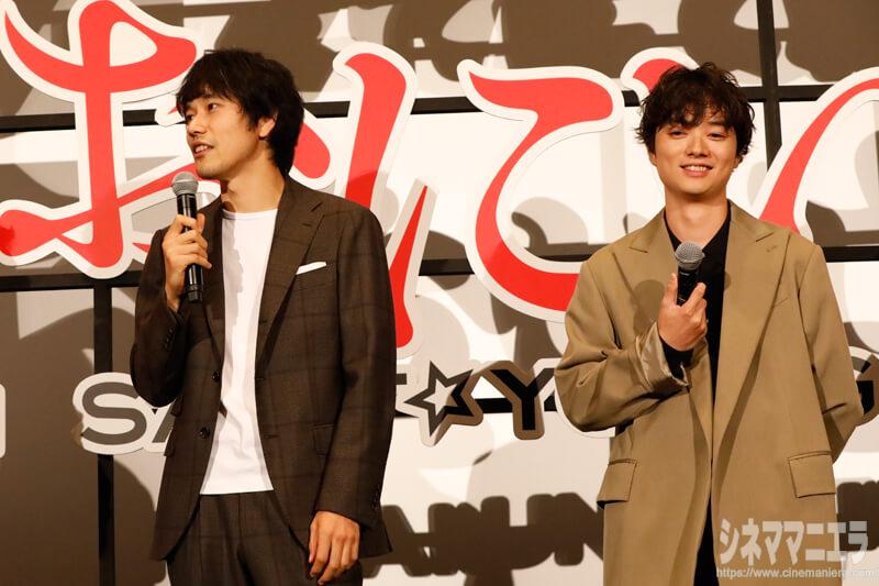 俳優の松山ケンイチと染谷将太が10月18日、俳優・山田孝之が製作総指揮を執り、監督・脚本を福田雄一が務めたドラマ「聖☆おにいさん」特別上映会に出席し、奇跡の実写化プロジェクトにおけるイエス役とブッダ役にについて内心で「どうすればいいのだろう」と感じ、「二人で悩んだ」ことを明かした。同日より動画配信サービス「ピッコマTV」で独占配信がスタート。