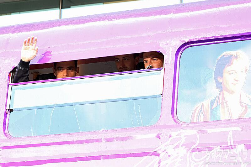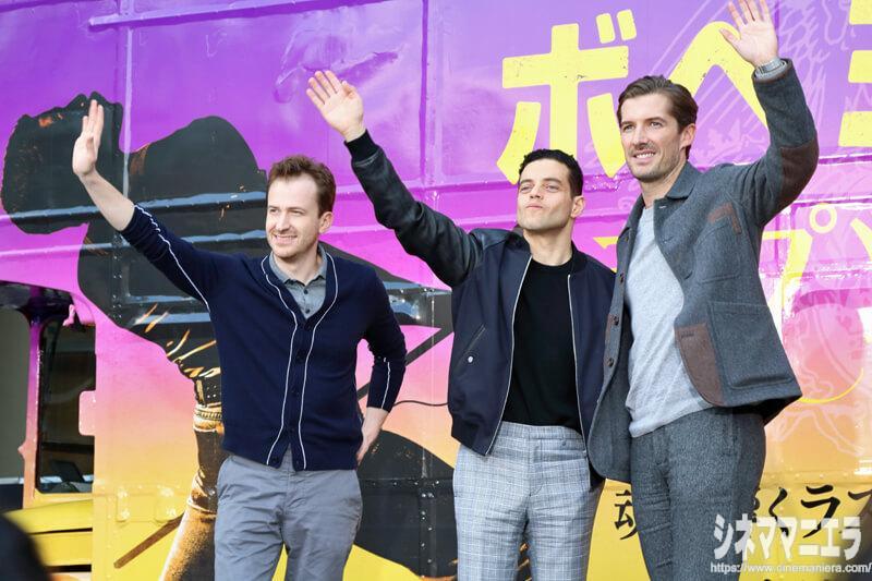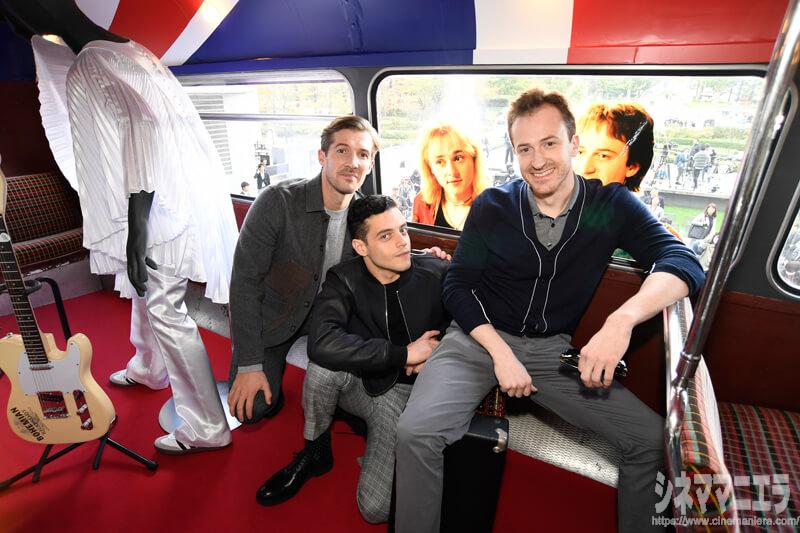 ラミ・マレック、グウィリム・リー、ジョー・マッゼロが初来日し映画『ボヘミアン・ラプソディ』記者会見後に同作のラッピングバスを見学しました! ラミは、沿道のファンに手を振り、日本語で「アリガトウゴザイマス」と語りかける場面も。