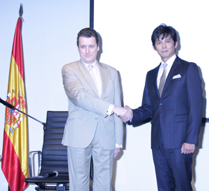 [シネママニエラ]8月2日、映画『アンダルシア 女神の報復』主演の織田裕二と西谷弘監督が、港区にあるスペイン大使館に表敬訪問をおこない、駐日スペイン大使であるミゲル・アンヘル・ナバーロ・ポルテラ閣下に謁見。織田と西谷監督は、外交官・黒田康作に携わっただけに、絶妙な“外交手腕”を発揮して日西交流を深めた。