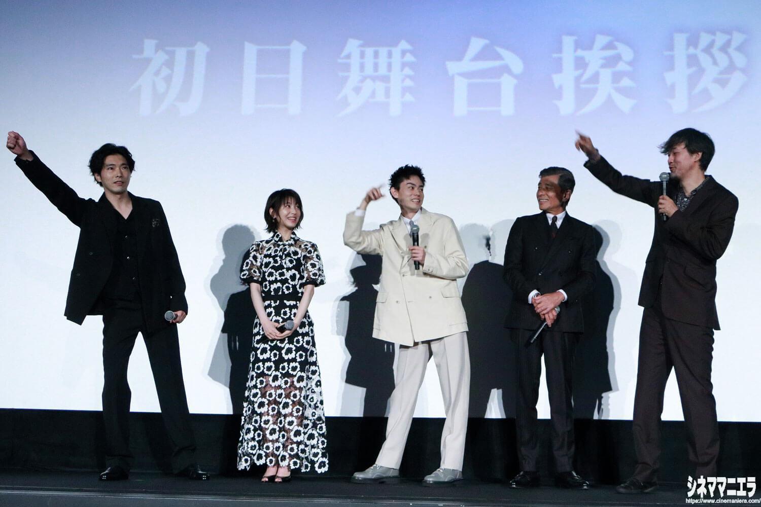 舞台挨拶は上映後に行われ、客席通路を歩みステージに登壇した。そのため鑑賞後の観客の熱気を肌で感じたようで「温かい拍手をありがとうございます。会場に入ってきた時に良い空気だったので、楽しんでいただけたと思っています」(山崎監督)、「入ってきた時の熱気の奥にある重さが感じられて、しっかり観てくださったのだなと実感できたのですごく嬉しいです」(菅田)、「劇中の暑かったシーンと同じぐらいの熱気を感じて本当に嬉しい限り」(柄本)と安堵と喜びの笑顔をみせる。
