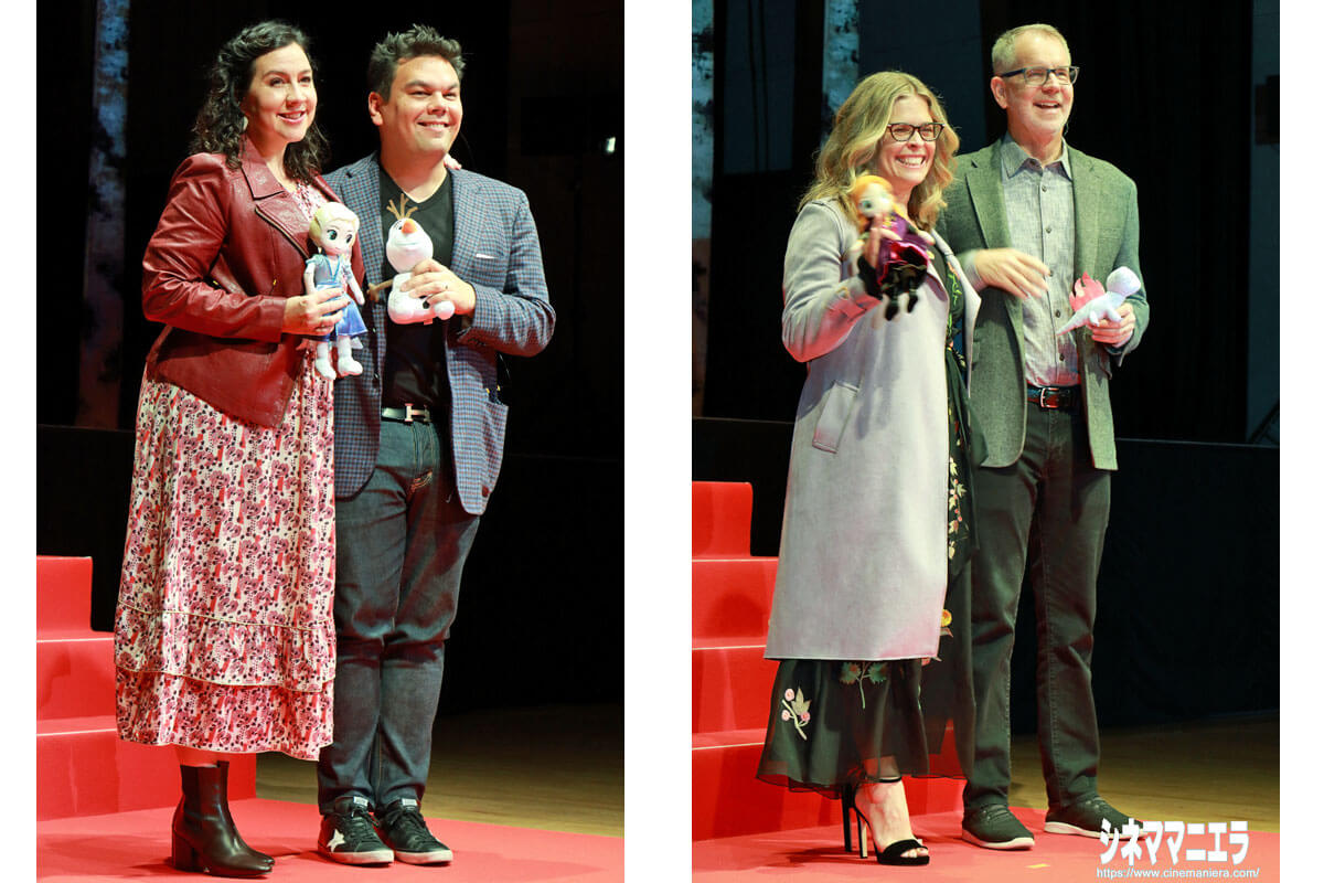 前作で、第86回アカデミー賞主題歌賞、第57回グラミー賞2部門をふたり揃って受賞し、本作でも音楽を手掛けたロバート・ロペスとクリステン・アンダーソン=ロペス夫妻は、本作のメイン楽曲「イントゥ・ジ・アンノウン」をはじめ、本編に使われる全7曲が贅沢に盛り込まれたこの日限りのスペシャルメドレーを生披露。作曲家であり歌唱力もある二人のライブパフォーマンスに、会場は驚きつつ、大きな感動に包まれた。まだ本編を鑑賞していない来場者が、思わず涙を流すほど熱がこめられた歌声であった。