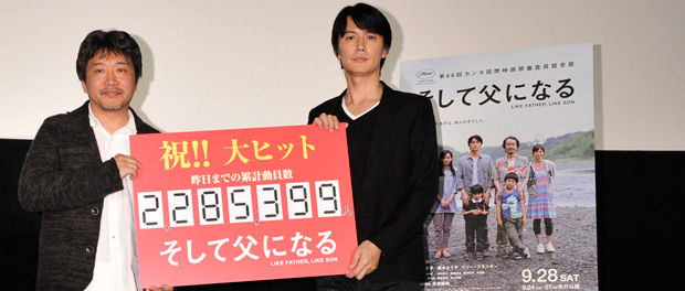 [シネママニエラ]福山雅治が、累計動員数2,285,399人を突破した主演映画『そして父になる』の是枝裕和監督によるティーチインイベントに、急遽サプライズ登壇し、初めて日本の観客からの質問に答えた。