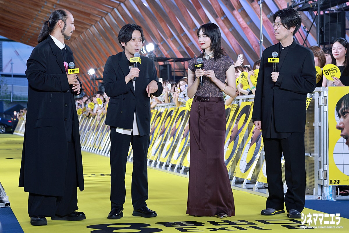 映画『8番出口』の88m無限ループカーペットアライバルが7月22日、東京・livedoor URBAN SPORTS PARK ブリリアランニングスタジアムにて開催され、主演の二宮和也、共演の小松菜奈、河内大和、川村元気監督が出席した。約650名が集ったイベントで、大歓声をあびた二宮は「めちゃくちゃ嬉しいです」と笑顔をみせた。