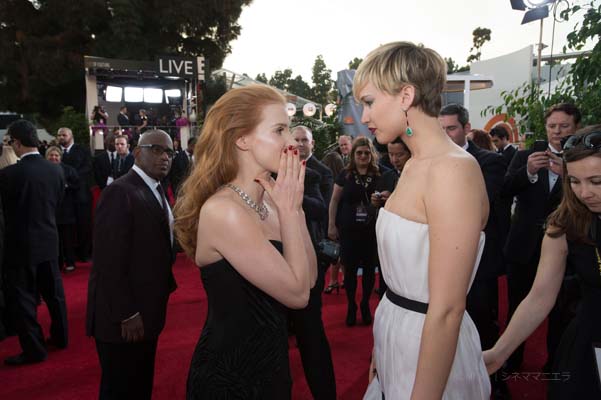 ジェシカ・チャステインとジェニファー・ローレンス©HFPA