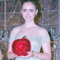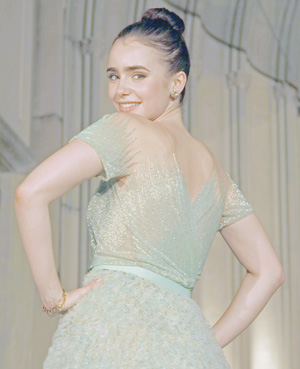 ミュージシャン、フィル・コリンズの愛娘として、生まれながらのセレブリティであるリリーは、舞台あいさつではにっこりとほほ笑みながら開口一番「こんにちは、白雪姫です。日本大好きです!」と日本語であいさつし、会場に集った人々の心を鷲掴み。そして白雪姫の役作りについて「型にはまらない、今どきの女の子が共感できるように、伝統的な優美さと好奇心とイノセントを兼ね備えて演じたいと思った」と語った。ちなみに、ご両親はプレミアで同作を鑑賞。ミュージカルシーンで歌って踊る娘の姿に感無量だったとのこと。