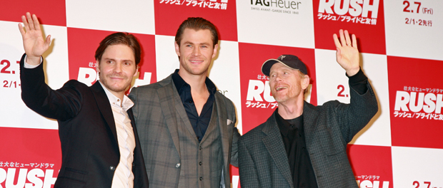 F1黄金時代の天才F1レーサーであるふたり、直感型のジェームス・ハント(クリス)と分析型のニキ・ラウダ(ダニエル)の半生を映画化した本作。ハワード監督は「いつもは観客を驚かせることを目的に映画をつくっているが、今回は自分が驚かされました。クライマックスの雨の富士スピードウェイは、F1ファンの間では神話になっているレースだし、撮影するのはとてもプレッシャーでしたが、うまく撮れたと思います。この映画は、アクションも満載の映画ですが、エモーショナルな人間ドラマが根底にあります!」と主張した。
