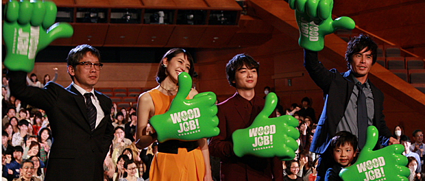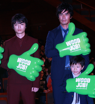 [シネママニエラ]映画『WOOD JOB!~神去なあなあ日常~』の完成披露試写会が3月25日に東京国際フォーラムにて行われ、主演の染谷将太、長澤まさみ、伊藤英明、子役の升水柚希、それに矢口史靖監督が登壇。映画『悪の教典』以来の再共演となった染谷と伊藤が、さわやかな青春映画であることを強調した。