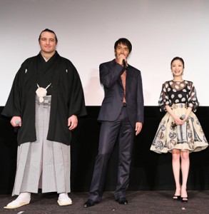 [シネママニエラ]映画『テルマエ・ロマエII』完成披露イベントと試写会舞台あいさつが3月26(フロ)日に催され、阿部寛、上戸彩、琴欧洲親方、豪風関、大喜鵬関、竹内力、宍戸開、武内英樹監督が出席した。