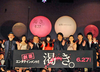 [シネママニエラ]中島哲也監督最新作『渇き。』の完成披露試写会が6月9日、TOHOシネマズ六本木ヒルズにて行われ、役所広司、小松菜奈、清水尋也、橋本愛、國村隼、オダギリジョー、中谷美紀、中島哲也監督という、キャスト・監督が登壇し同作について語った。なお、公開日を6月27日に繰上げすることを先月発表していた。