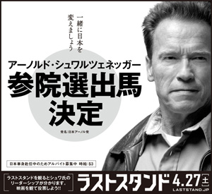[シネママニエラ] 4月1日、米俳優のアーノルド・シュワルツェネッガーが、日本で新党「日本アーノル党」を立ち上げ、今夏に迫る参議院選挙に立候補することを表明したそうだ。