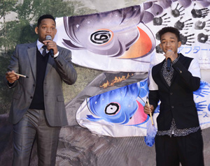 ステージに登場したウィルとジェイデンは、親子で即興ラップを披露し、会場を沸かせた。また、子供の日を前に鯉のぼりの親子を掲げた。この鯉のぼりの鱗部分は、会場に招待された中学生たちの手形を押して作成されており、スミス親子が鯉の目入れをし鯉のぼりは完成した。