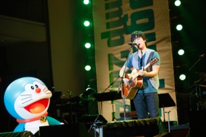 [シネママニエラ]ドラえもんは7月26日、映画『STAND BY ME ドラえもん』の主題歌「ひまわりの約束」を歌う秦基博が出演したオーガスタキャンプに飛び入り参加し、秦に声援を送った。