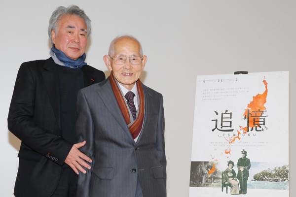 元日本軍海軍上等水兵の土田喜代一さんが、ドキュメンタリー映画『追憶』(小栗謙一監督)の公開初日に駆けつけ、観客の前で当時のことを振り返った。©2015「追憶」製作委員会