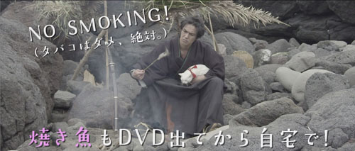 マナーCMは、斑目久太郎が「『猫侍』は劇場内でマナー守らない人を許さない侍」と鋭い眼光を向けどう喝するシーンから始まる。続くシーンでは、忍者を相手に戦いながら「携帯電話の電源は、斬るべし!斬るべし!斬るべし!」と吠え、南の島で釣った魚を焼くシーンでは「NO SMOKING!」と自ら突っ込みを入れている。最後に「マナーを守らない人はメッ!」と、なぜか赤ちゃんにも分かる言葉でマナーを呼びかけており、何とも効果的なCMとなっている。また、初公開の玉之丞の愛らしい姿もたくさん公開されている。