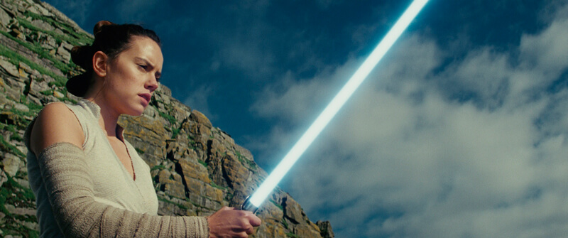 映画『スター・ウォーズ/フォースの覚醒』ラストシーンでジェダイの騎士ルーク・スカイウォーカーを探し出した孤独なヒロインのレイ。ルーク・スカイウォーカーがレイに「私が知る真実はひとつ、ジェダイは滅びる」と告白する。