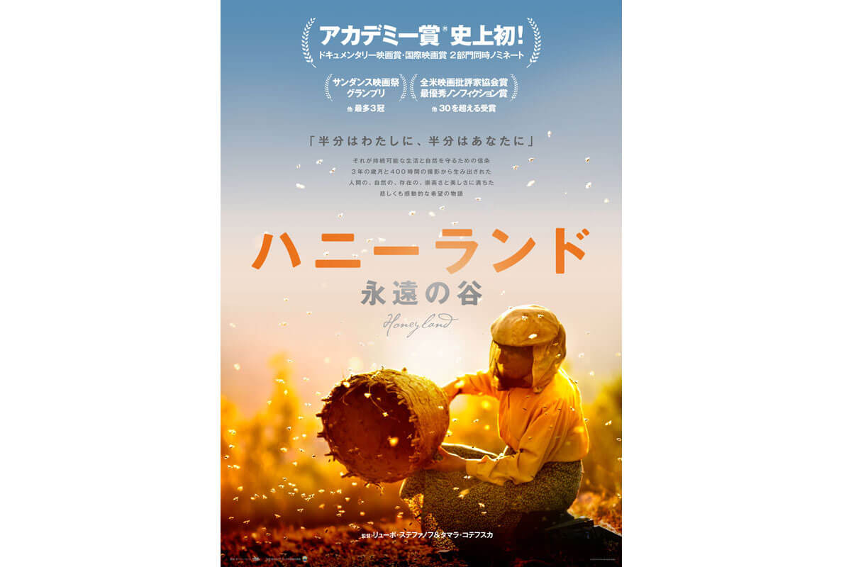 北マケドニアの首都スコピエから20キロほど離れた、電気も水道もない故郷の谷で、寝たきりの盲目の老母と暮らすヨーロッパ最後の自然養蜂家の女性を捉えたドキュメンタリー作品。第92回アカデミー賞において、オスカー史上初の長編ドキュメンタリー賞&国際映画賞にノミネートされた映画として話題となった。(原題 Honeyland )